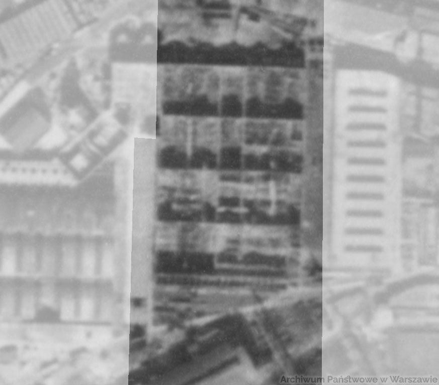 Zdjęcie lotnicze odbudowanych w czasie okupacji i przebudowanych hal: