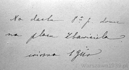 "Na dachu 8-p. [ośmiopiętrowego] domu na placu Zbawiciela. wiosna 1911 r."