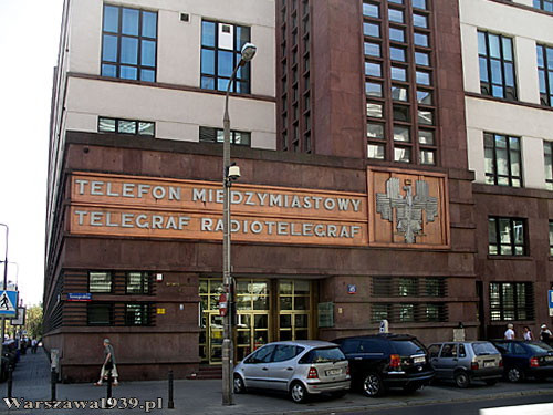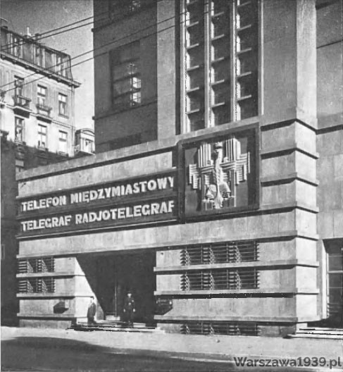 Wejście do gmachu od strony Nowogrodzkiej: 1934źródło: "Dwadzieścia lat poczty i telekomunikacji w Polsce niepodległej" autor: Czesław Olszewski lipiec 2006źródło: zdjęcie - Konrad Mazurkiewicz Orzeł znad wejścia: lipiec 2006źródło: zdjęcie - Konrad Mazurkiewicz