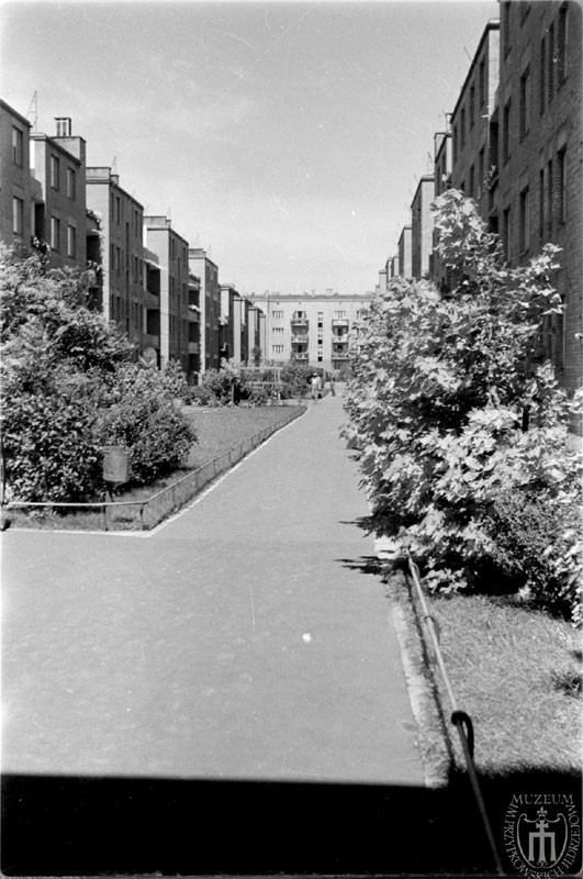 Od prawej: dom przy Łowickiej 51, dom przy Łowickiej 53, dwa skrzydła budynku należącego do Drugiej Spółdzielni Mieszkaniowo-Budowlanej Urzędników Najwyższej Izby Kontroli Państwa - przy Łowickiej 55 i przy Rakowieckiej 57.