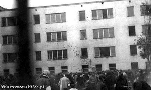 Elewacja skrzydła prostopadłego do ulicy widoczna od strony wschodniej: 1942źródło: Ze strony www www.deathcamps.org