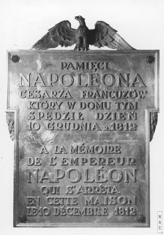 Tablica upamiętniająca pobyt Napoleona Bonaparte w hotelu: grudzień 1937źródło: Narodowe Archiwum Cyfrowe grudzień 1937źródło: Narodowe Archiwum Cyfrowe