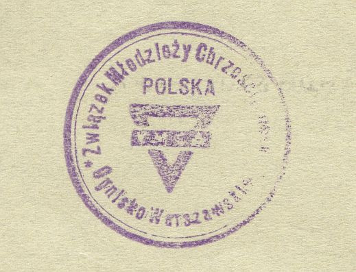 Dyplom za czwarte miejsce w konkursie Wydziału Oświatowego Polskiej YMCA z roku 1938. zbiory własne muzeum Powiększenie stempla