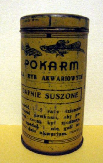 Puszka po "Pokarmie dla ryb akwariowych" ze sklepu przyrodniczego "Kanarion". nadesłane przez p. Elżbietę Figlarz Pokrywka