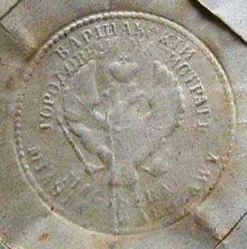 Dwujęzyczna sucha pieczęć Magistratu ... | i jej powiększenie |
