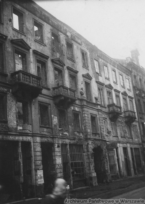 etapami: wypalona część budynku w 1947, pozostałą część kamienicy rozebrano w późniejszym okresie.