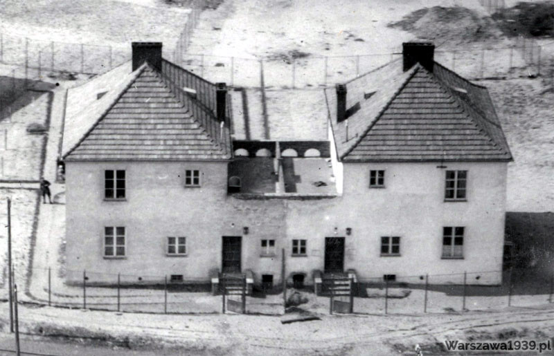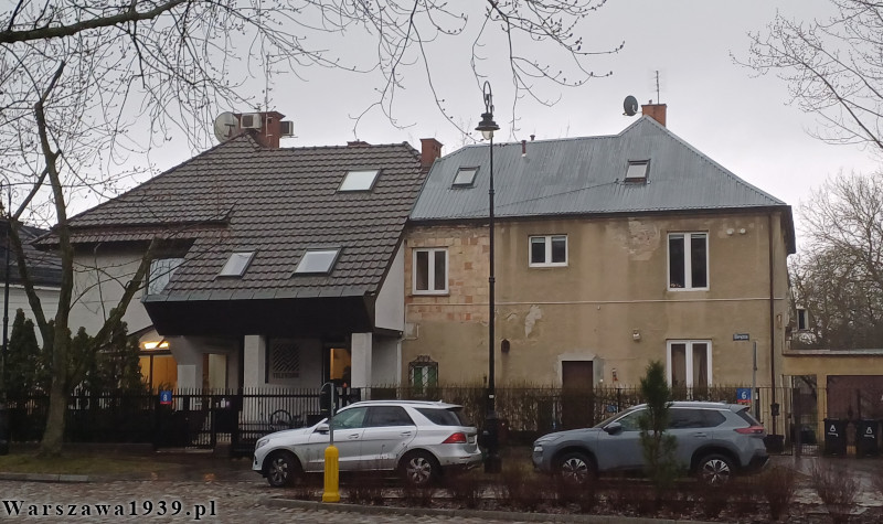 Dwa symetryczne domy, powstałe w ramach I serii budowy domów wznoszonych przez Oficerską Spółdzielnię Budowlano-Mieszkaniową „Sadyba".