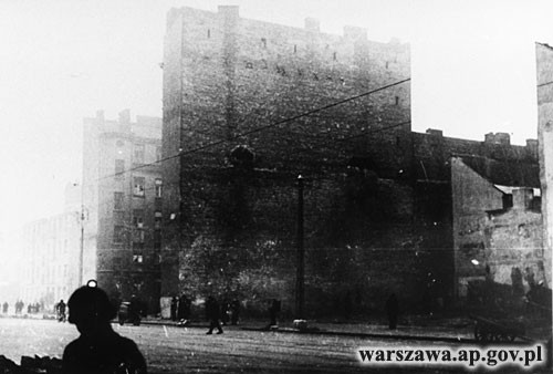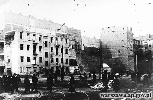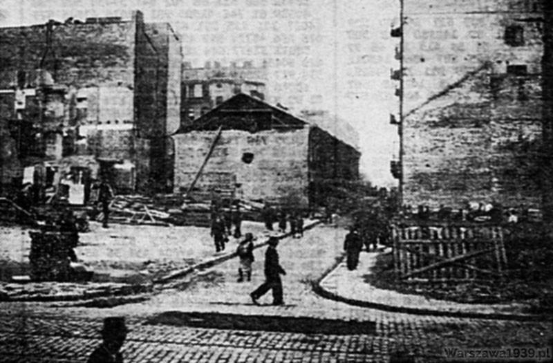 Po prawej widoczny wylot Muranowskiej i fragment kamienicy Bonifraterska 25.