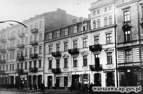 Na zdjęciu po prawej widoczne zabudowania frontowe przy Bonifraterskiej 7 (przed zburzeniem w 1938), po lewej stronie Bonifraterska 10, 8, 6.