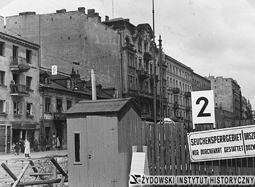 Od lewej budynki przy Chłodnej: fragment nr 48, nr 46, nr 44, nr 42, nr 40, nr 36, nr 34 i dalej aż do skrzyżowania z Żelazną (widoczna wieżyczka budynku nr 26 lub nr 28).