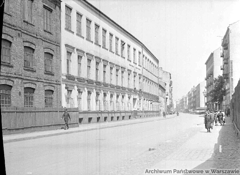 Po lewej: fragment fabryki przy Dzielnej 64, Państwowa Fabryka Wyrobów Tytoniowych przy Dzielnej 62, dom przy Dzielnej 60, kamienice przy Dzielnej 56 i 54: