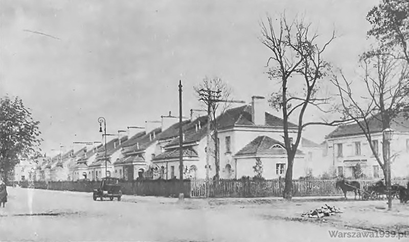 Od prawej: fragment willi Sucha 22/24, domy w zabudowie szeregowej przy Filtrowej 29/39 i Filtrowej 41/55, w oddali słabo widoczny dom Filtrowa 21/27: