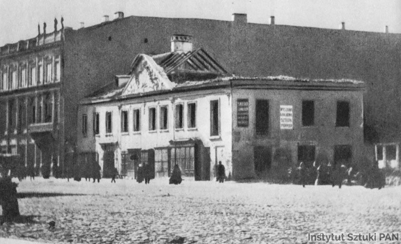 Po lewej fragment kamienicy przy Krakowskim Przedmieściu 5.